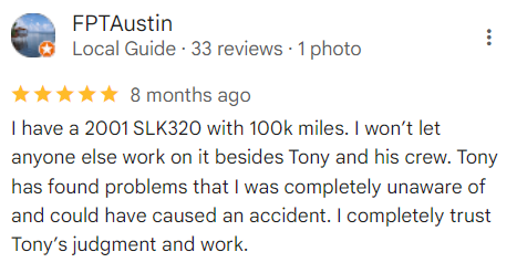 Our mechanics have over 60 years combined experience with Mercedes vehicles and have seen every kind of issue in nearly every model.